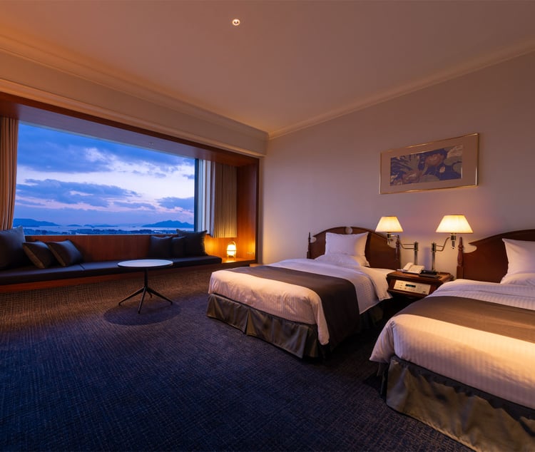 Enjoy a blissful moment in our guest rooms while overlooking the beautiful scenery of Hiroshima, in a harmony of premium comfort and tranquility.
