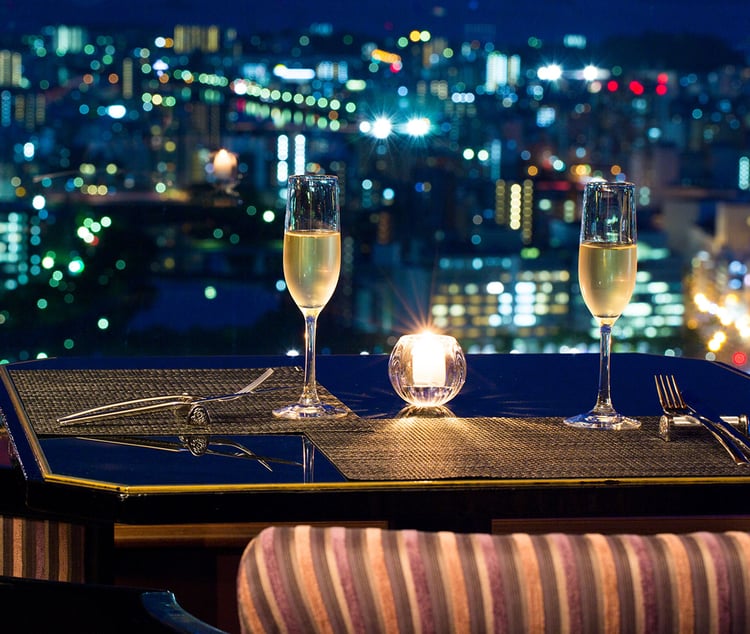 A special experience accentuated by the night view from the hotel's top floor