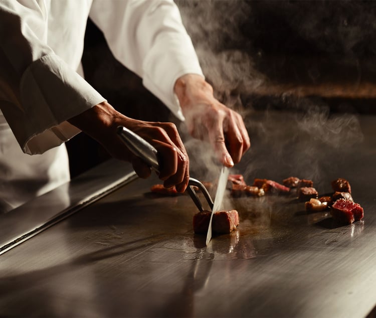 Experience the thrill of teppanyaki as the finest ingredients are prepared before your eyes