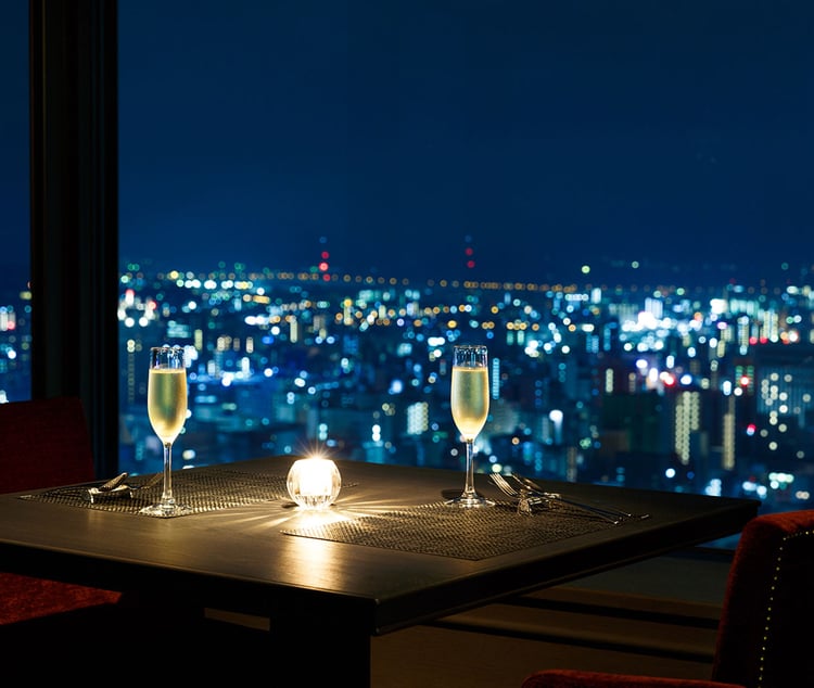 A special experience accentuated by the night view from the hotel's top floor