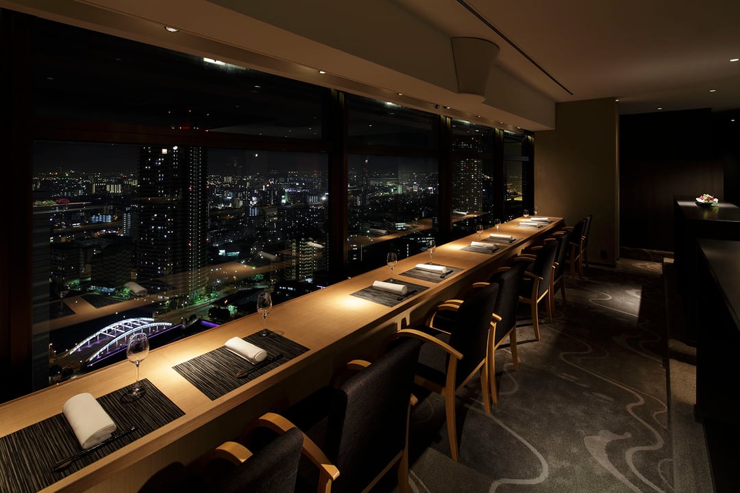 We recommend savoring our seasonal kaiseki cuisine in a refined space that embodies the image of 'Nakanoshima' suspended in the sky, offering a beautiful view of the Osaka cityscape from the hotel's top floor at 110 meters high, along with the elements of 'water and light.
